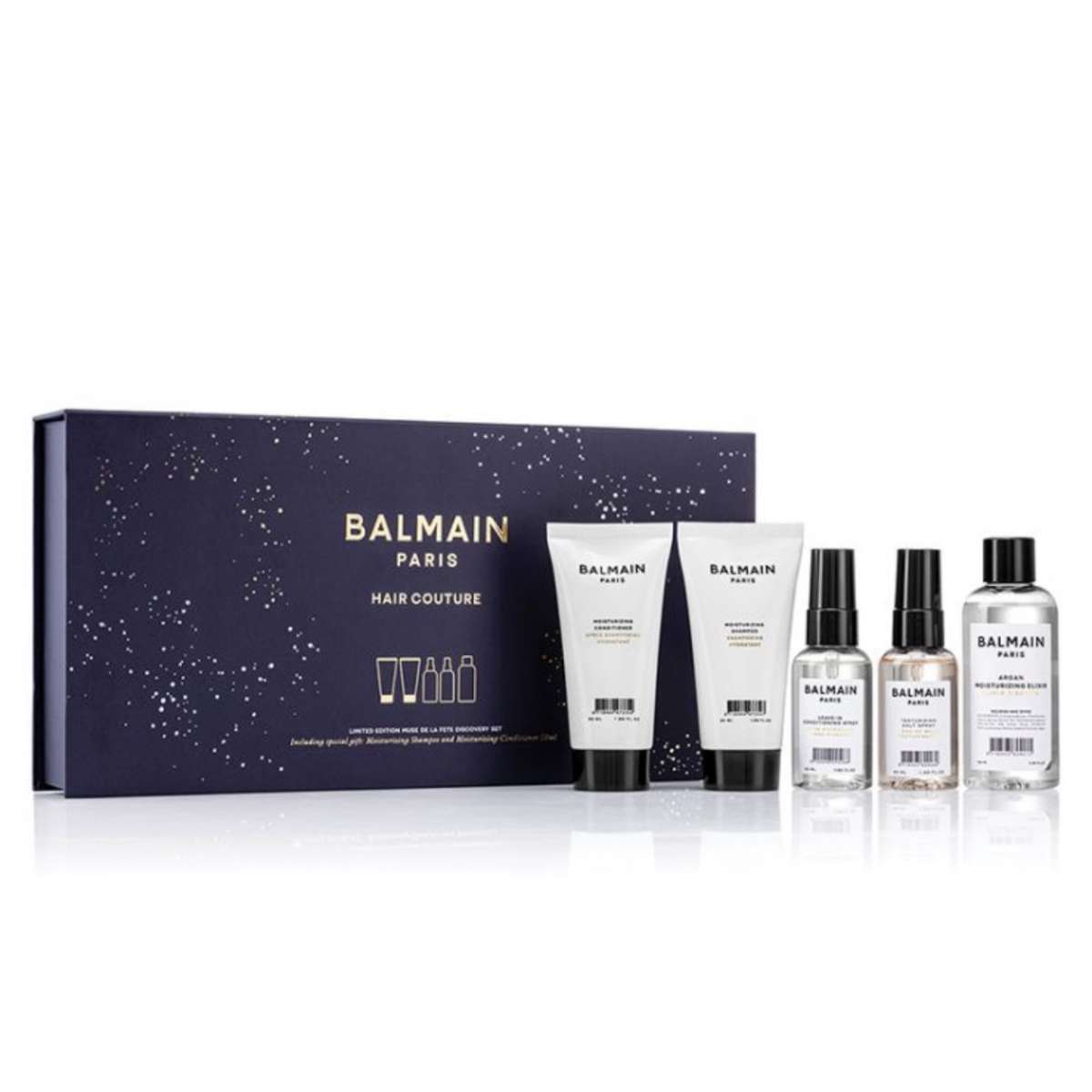 Balmain Hair Muse De La Fête Discovery Set je luxusní limitovaná sada pěti miniatur profesionálních produktů Balmain Hair Couture. Ideální jako dárek nebo na cesty — tato kolekce vyživuje, hydratuje, chrání a dodává vlasům texturu a lesk.