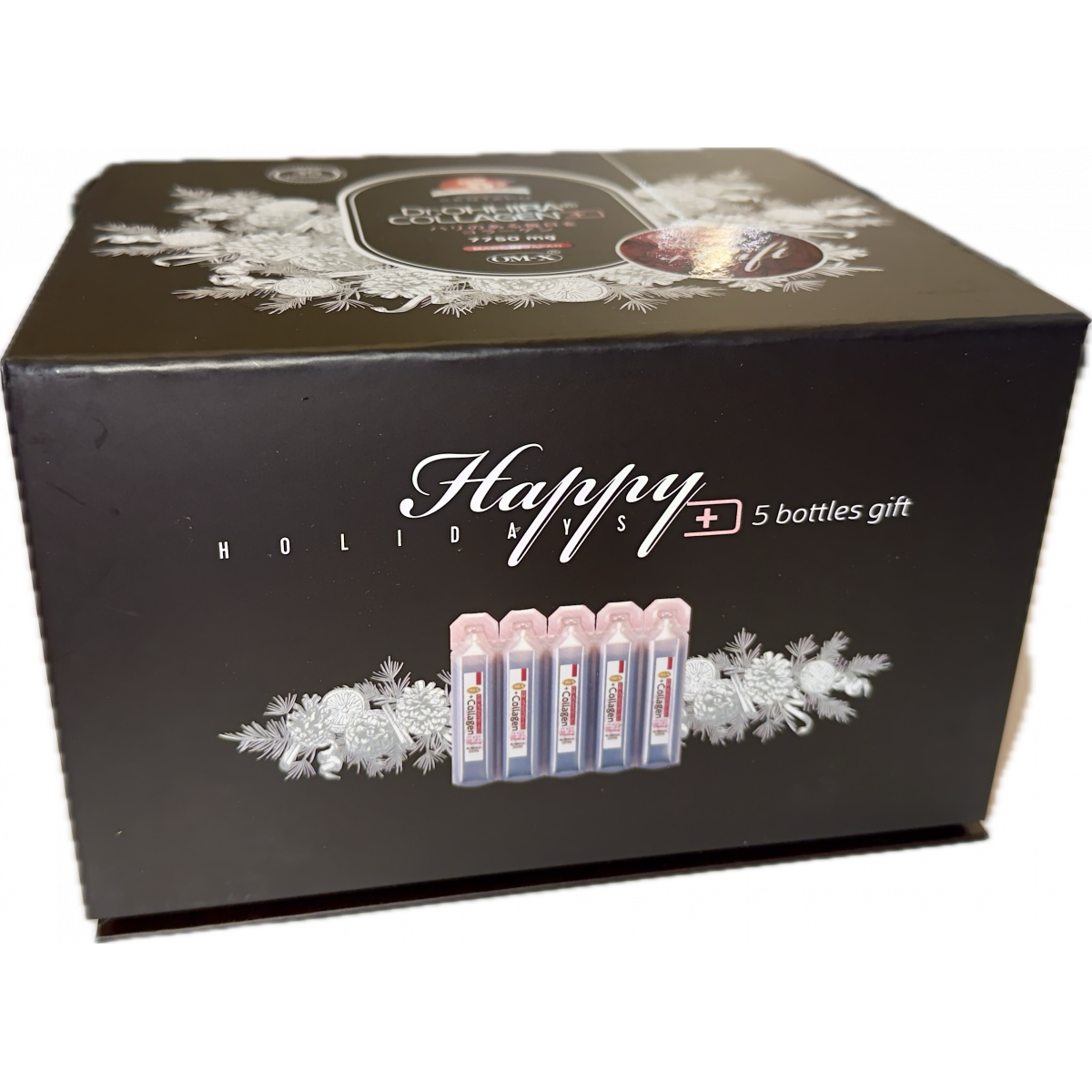 1 krabička obsahuje 10 lahviček po 20 ml (Celkové množství: 200ml) Složení (v jedné lahvičce): Hydrolyzovaný rybí kolagen 7 250 mg, Tripeptid kolagenu (z ryb) 500 mg, Koenzym Q-10 12,5 mg, Elastin (z ryb) 5mg, Konjac práškový extrakt (včetně Ceramidu) 5 mg, Kyselina citrónová 850mg, Borůvková šťáva 1 000 mg; Vitamin C 250mg (312,5% DRH *)Karamel 100 mg, Aroma 40mg, Sladidlo (sukralóza) 35 mg, Kyselina hyaluronová 5mg, Čištěná voda - 12.91g, Fermentovaný probiotický a rostlinný extrakt 10 mg obsahující 12 probiotických bakteriálních kmenů: B. breve ss. Rychlý , B. infantis, ss. Infantis, B. longum, B. Actis, L. acidophilus, L. brevis, L. bulgaricus, L. casei s casei, L. fermentum, L. helveticus s., Yugurt, L. plantarum a S. thermophilus),cukry/oligosacharidy) ovocný extrakt švestka domácí (Prunus domestica) - 2.182 mg; listový extrakt ze špenátu setého (Spinacia oleracea) - 0.727 mg; extraxt z kustovnice čínské (Lycium chinese) - 0.273 mg; prášek z houby Shitake (Lentinula edodes) - 0.227 mg;listový a stonkový extrakt z hořčice zelené / Komatsuna (Brassica rapa var. Perviridis) - 0.136 mg; ovocný extrakt z fíkovníku obecného (Ficus carica I.) - 0.136 mg; extrakt z borůvky obecné (Vaccinium) - 0.091 mg; Voskovník červený (Myrica rubra) - 0.091 mg; Yuzu (Citrus JUNOS SIEB. Ex Tanaka) - 0.091 mg; prášek z Agaricus (Agaricus blazei) - 0.091 mg; prášek z Maitake (Grifola frondosa) - 0.091 mg; Hiziki (mořské řasy Hizikia fusiforme) - 0.091 mg; Wakame (Undara pinnatifida) - 0.091 mg; Kombu (Laminaria japonica) - 0.091 mg